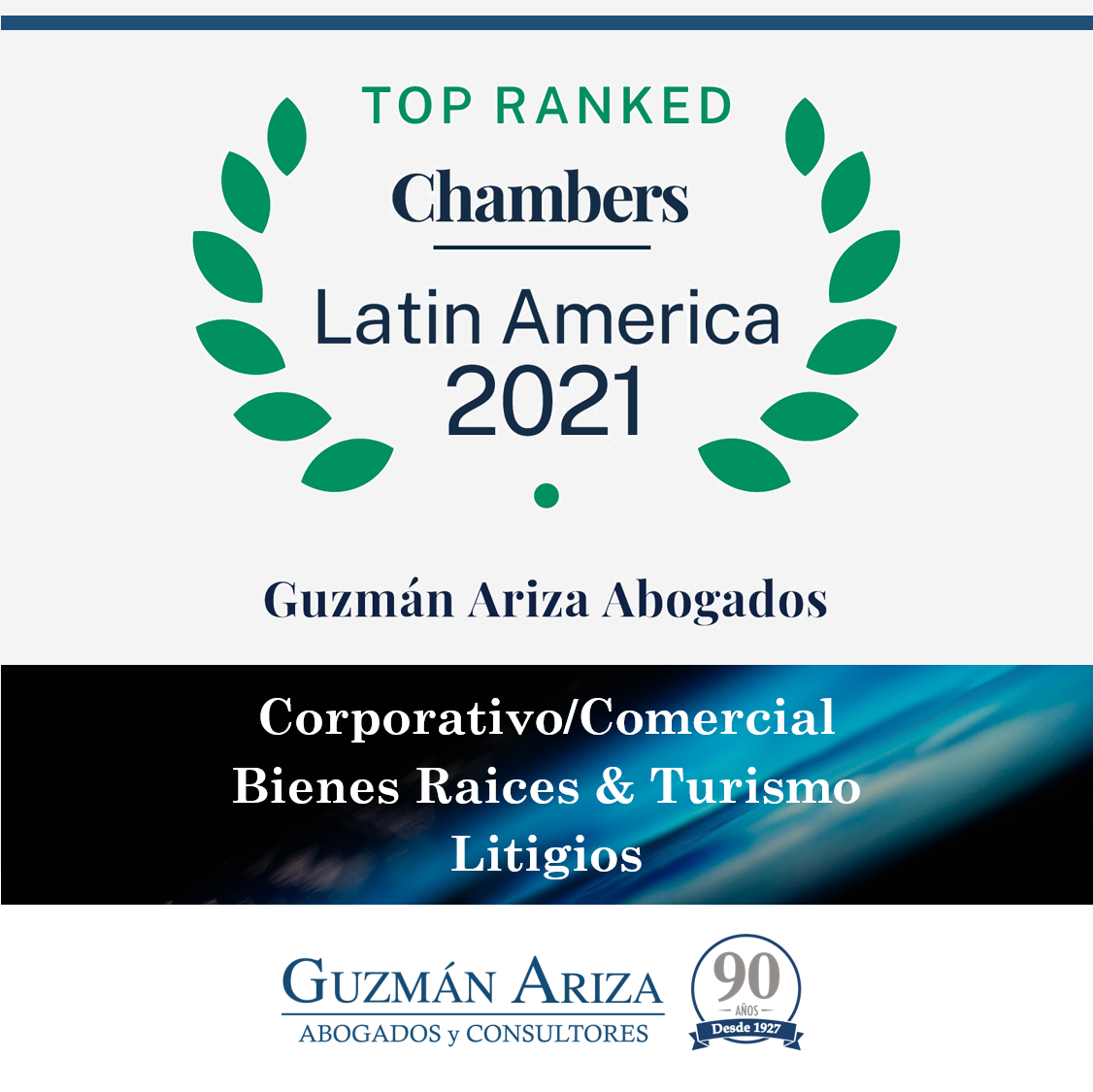 Nos enorgullece anunciar que hemos sido reconocidos nuevamente por Chambers and Partners en su directorio de América Latina 2021 como una de las firmas mejor posicionadas en República Dominicana, en las áreas de derecho corporativo/comercial, bienes raíces y turismo y litigios.
