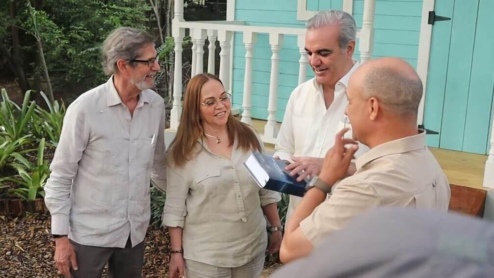 Durante esta visita compartió con don Fabio Guzmán Ariza, presidente de la firma, y con doña Vivian Saladín de Guzmán, quienes le acompañaron personalmente en el recorrido del orquideario. En la visita, el señor Luis Abinader recibió una copia dedicada del Diccionario del Español Dominicano, de manos de don Fabio.